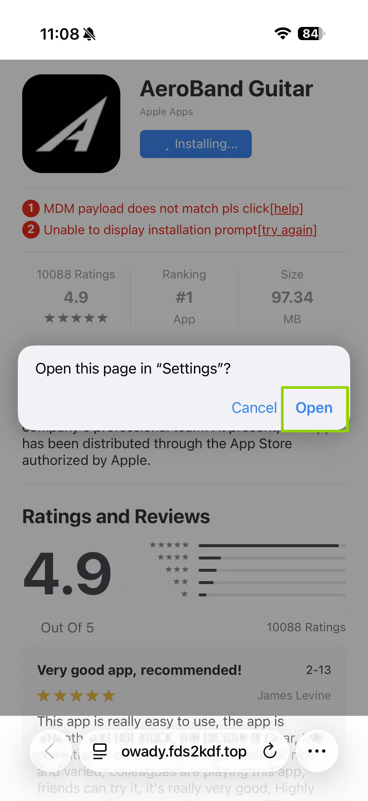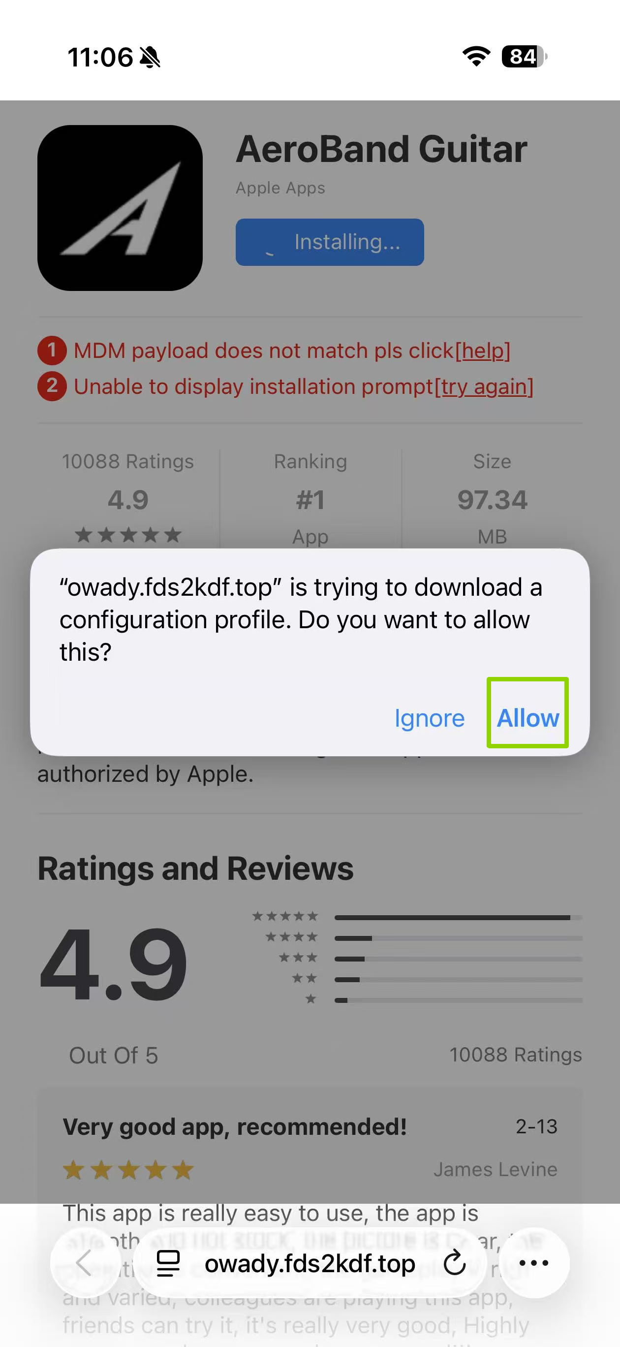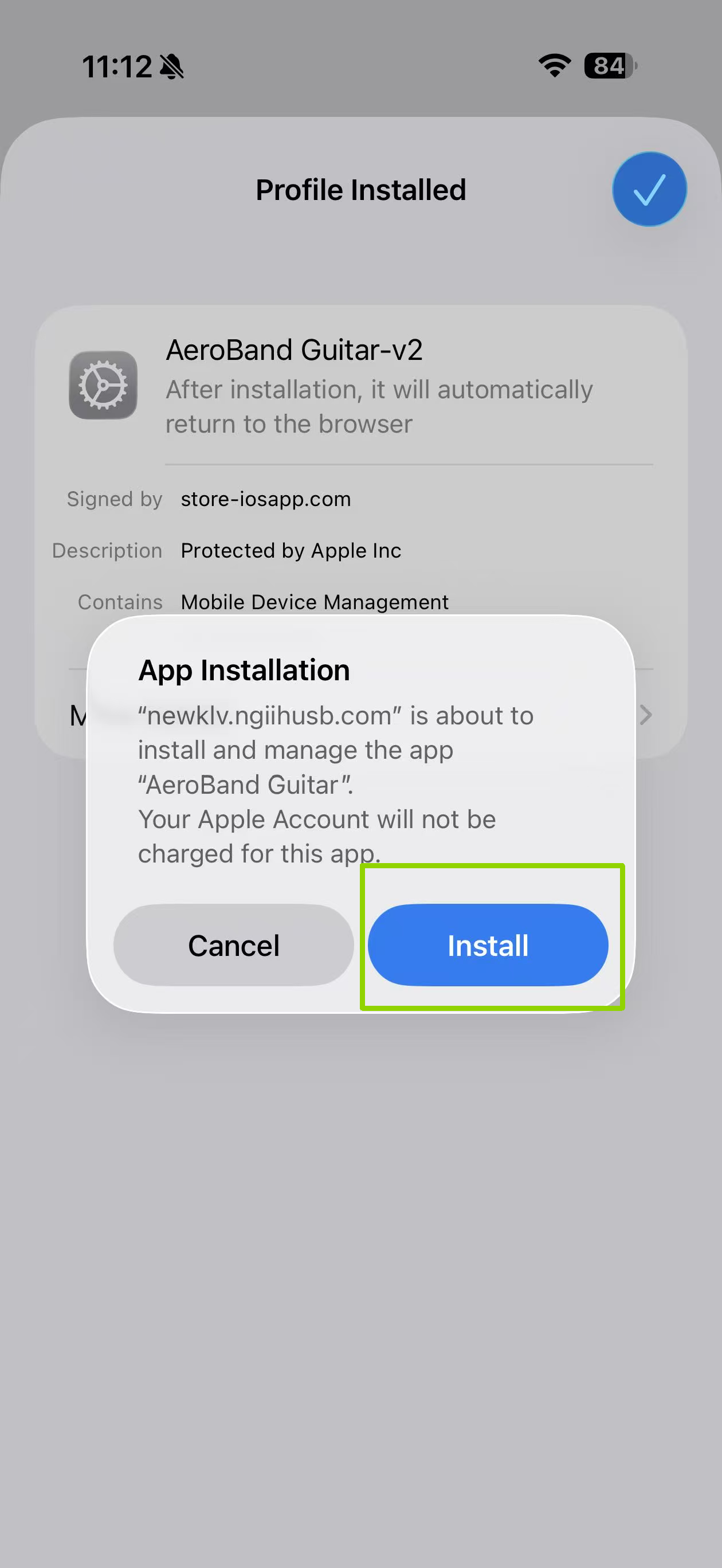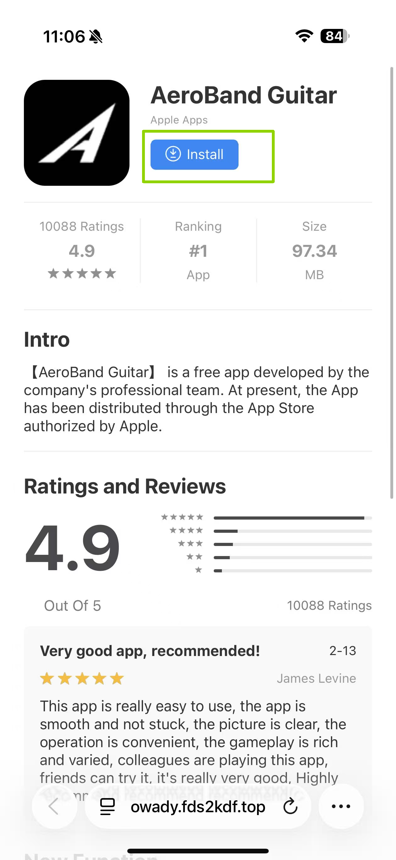 Open the following link in a browser on your iPhone: AeroBand Guitar App, then follow the steps below: