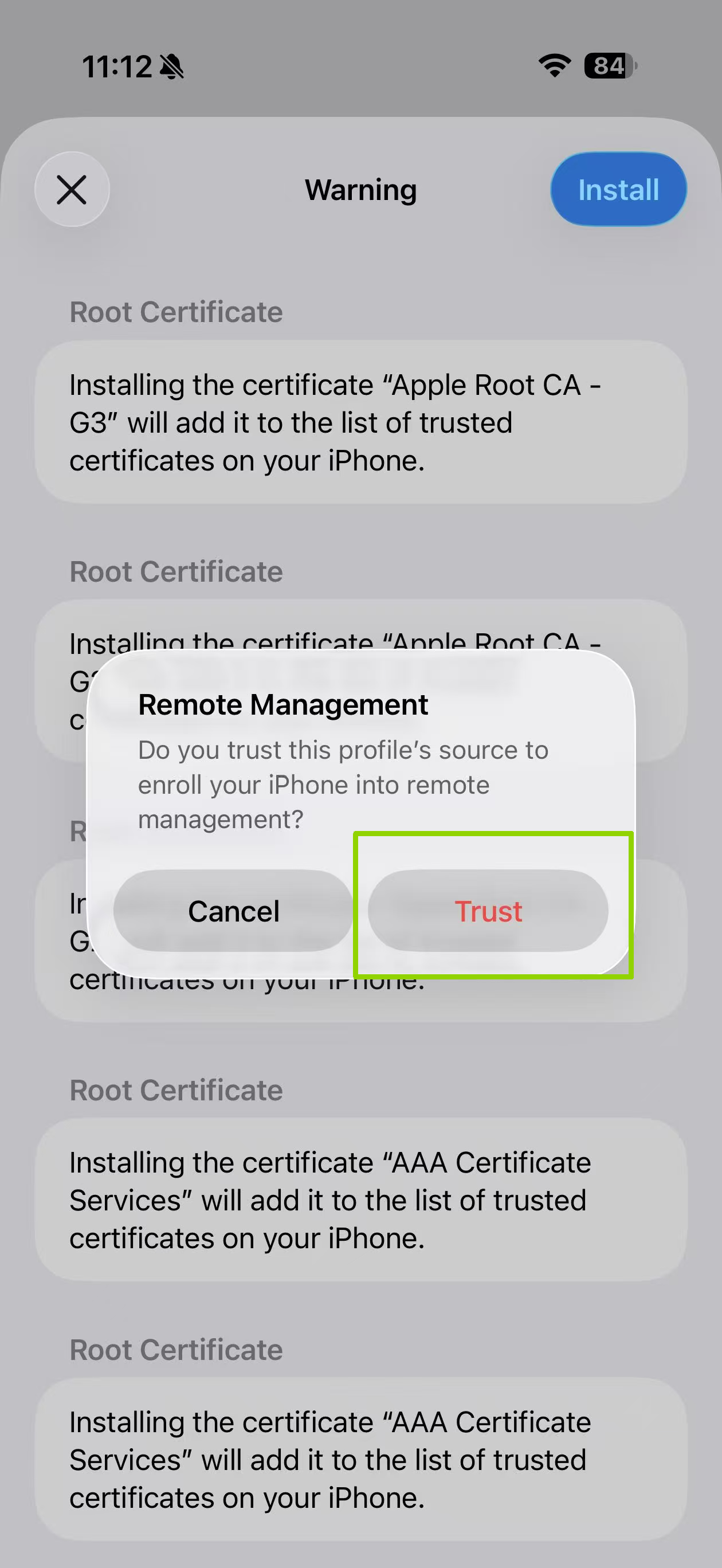 Note: If you need to uninstall and reinstall, you need to remove the downloaded profile first, then follow the steps above.